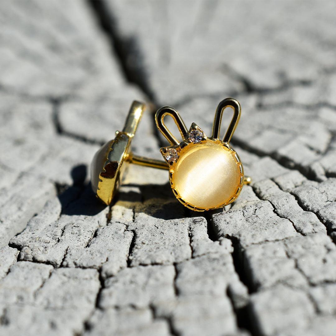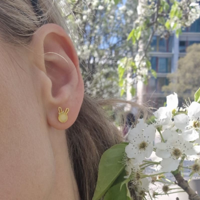 Finom kidolgozású nyuszifejecske, csodaszép kővel, kedves kis masnival díszítve. egyetlen arany színű fülbevalónk, ami élőben mèg magával ragadóbb.